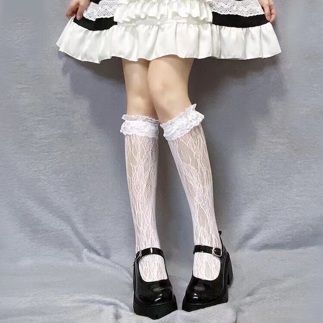リボン柄のレースタイツです⋈*.。 いつものコーディネートにプラスするだけで 一気にガーリーな雰囲気に♡♡ カラー ホワイト / ブラック サイズ フリーサイズ / 22cm〜24cm 〝備考〟 測り方によって、1~3cm程の誤差が生じる可能性がございます。 モニターの環境によって実物と色が違って見える場合がございます。 15-008