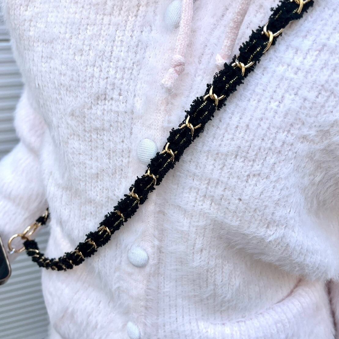 ツイードチェーンスマホショルダーストラップ