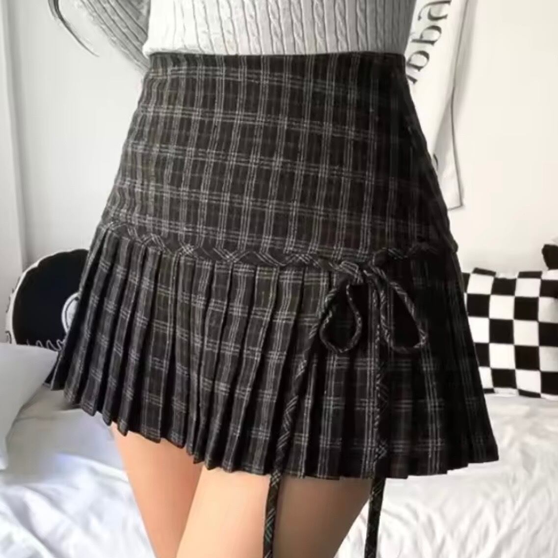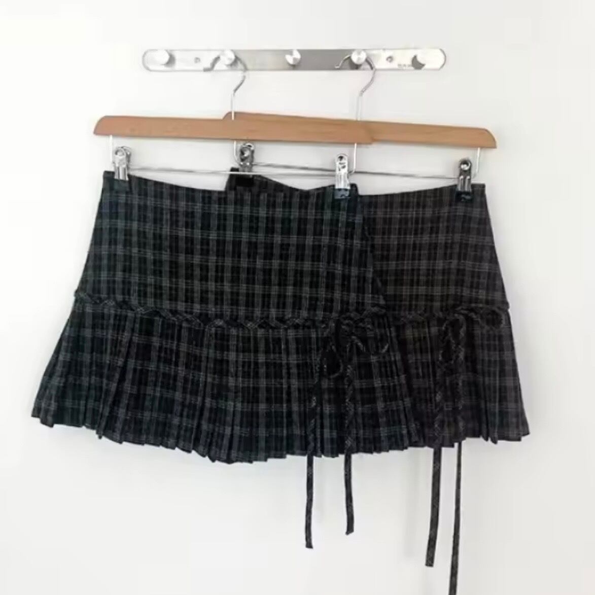 リボン付きチェックプリーツミニスカート