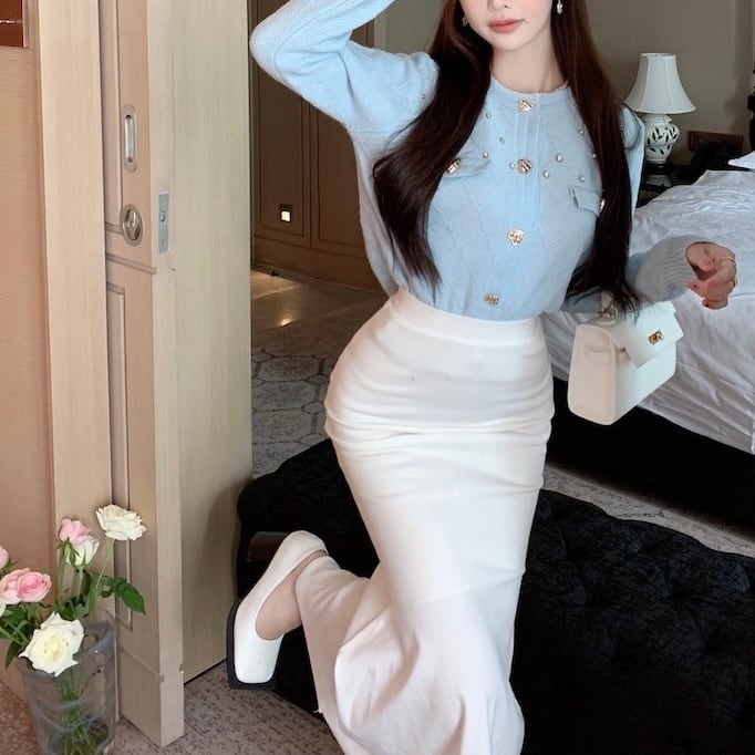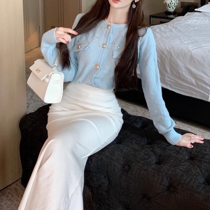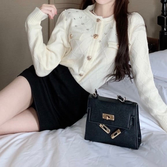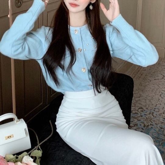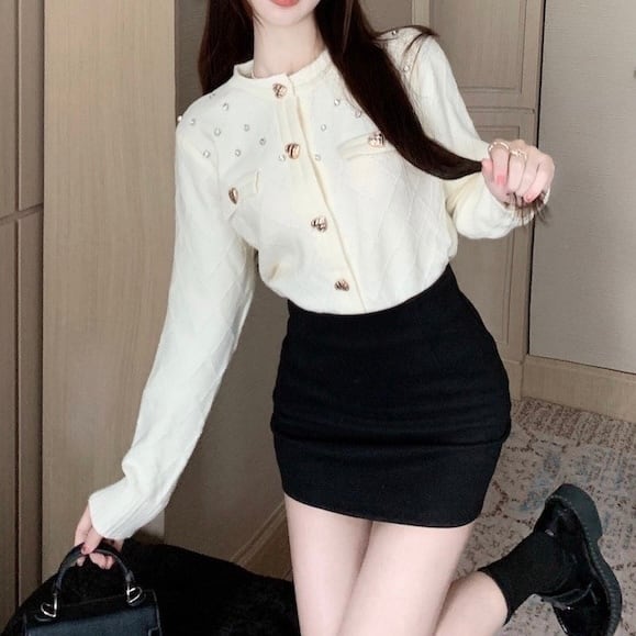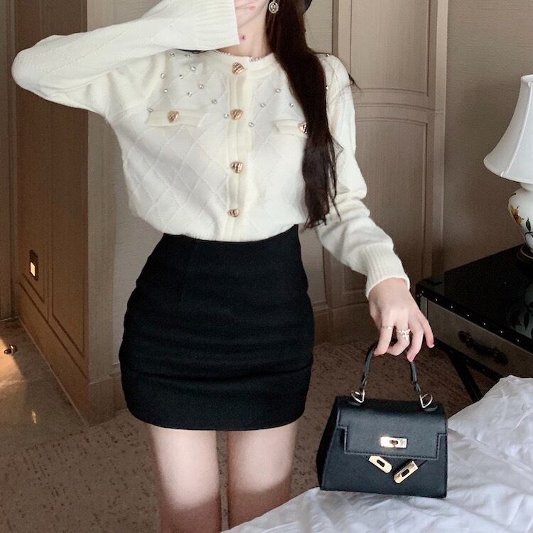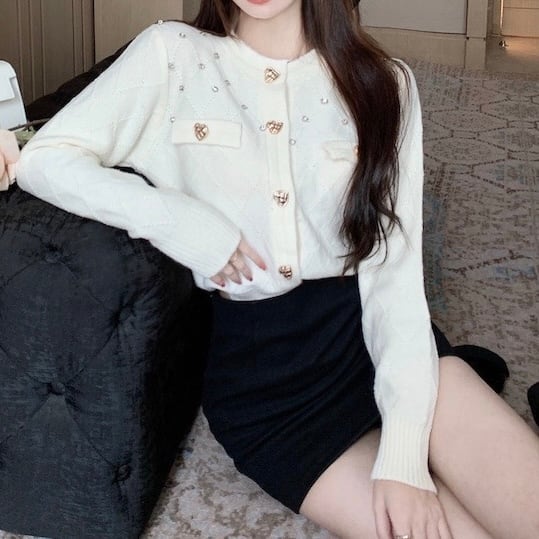 ビジュー付きハートボタンニットカーディガン