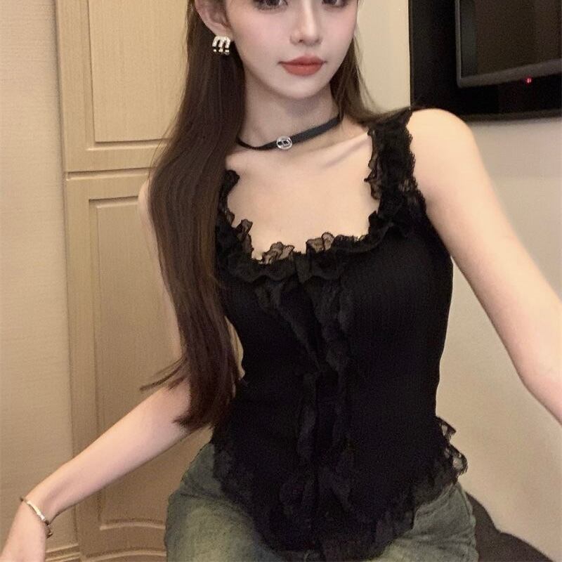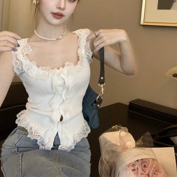 レース付きリブニットキャミソール