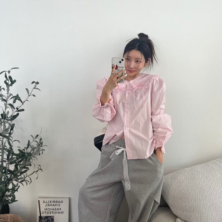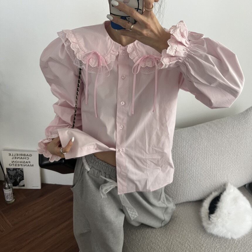 リボン付きBIGカラーブラウス