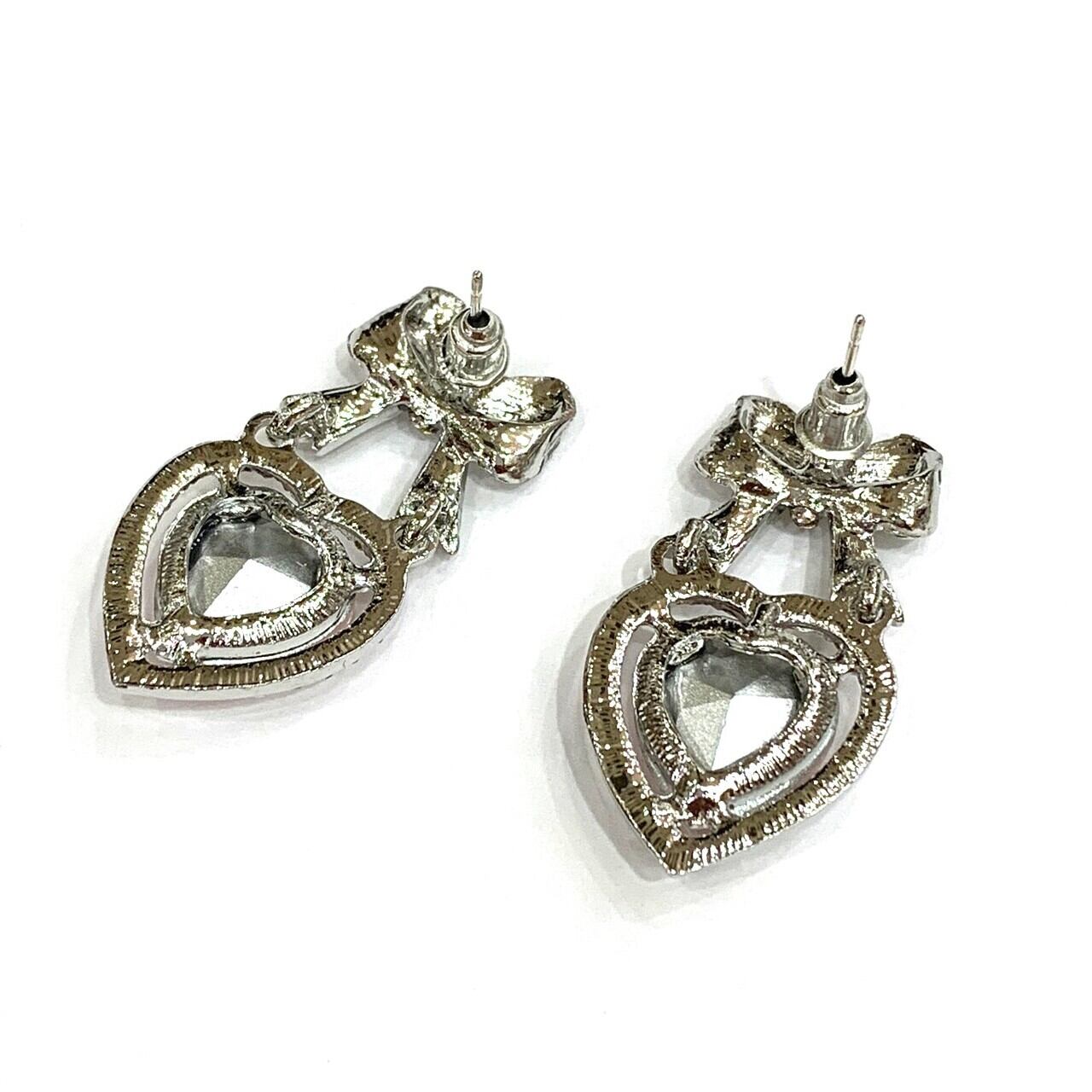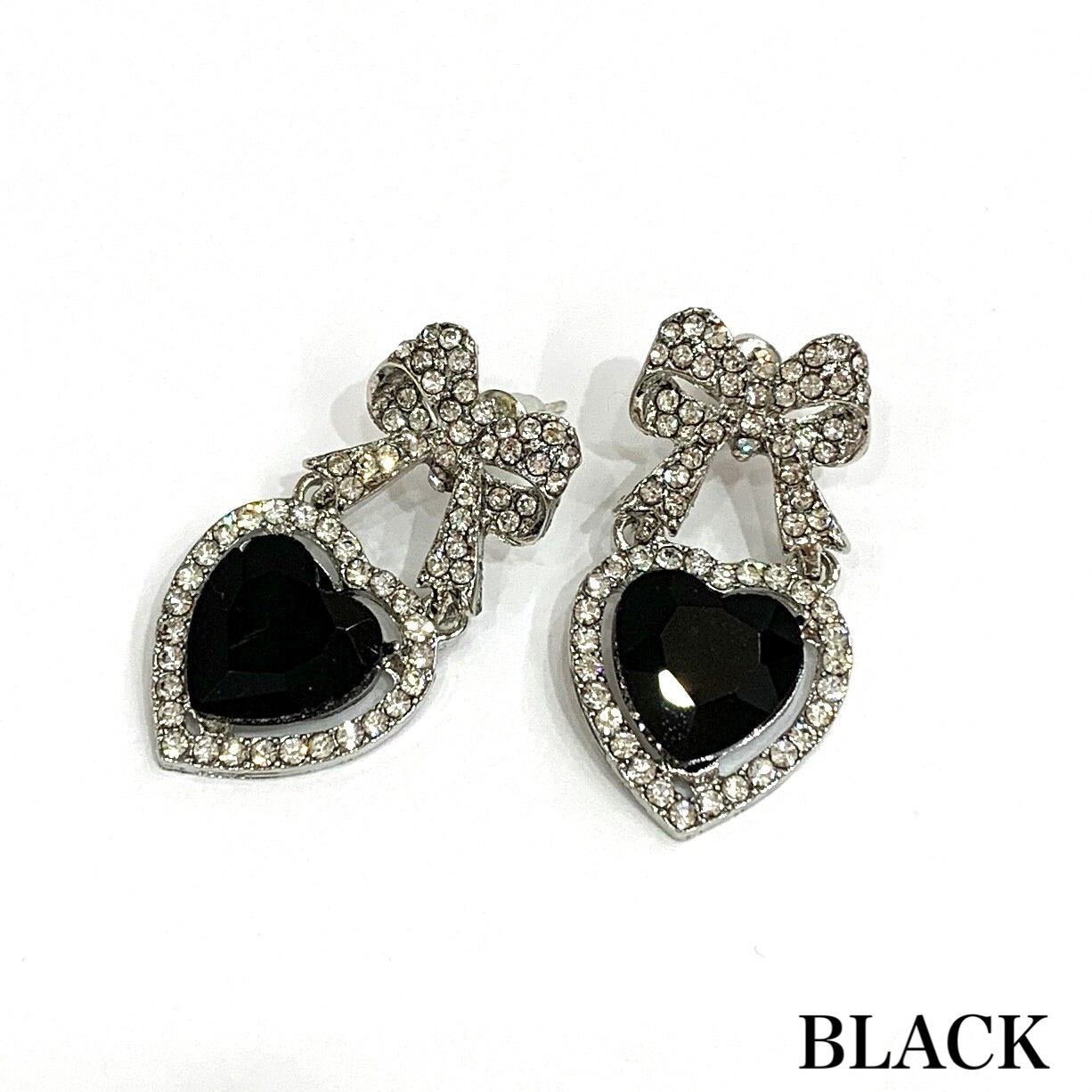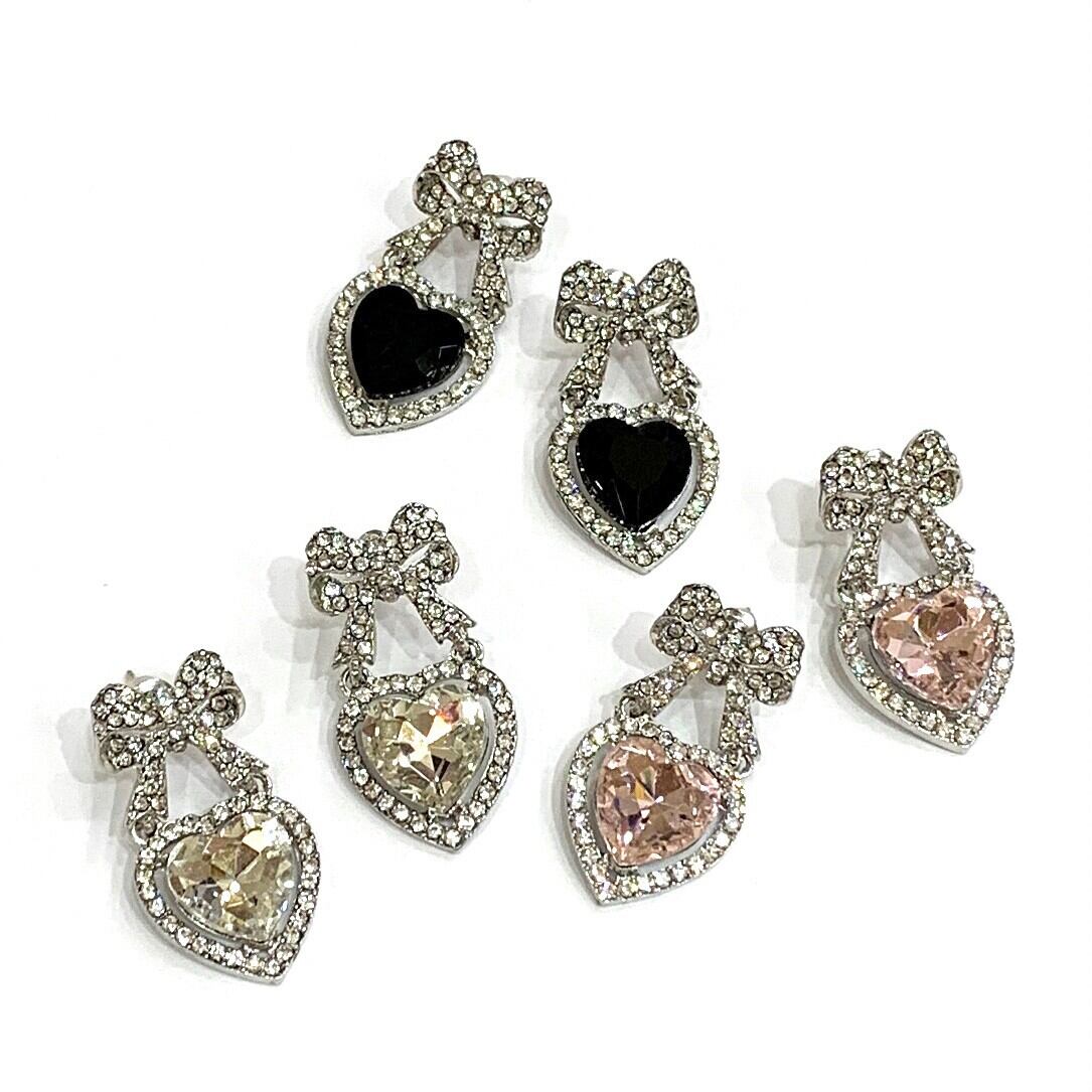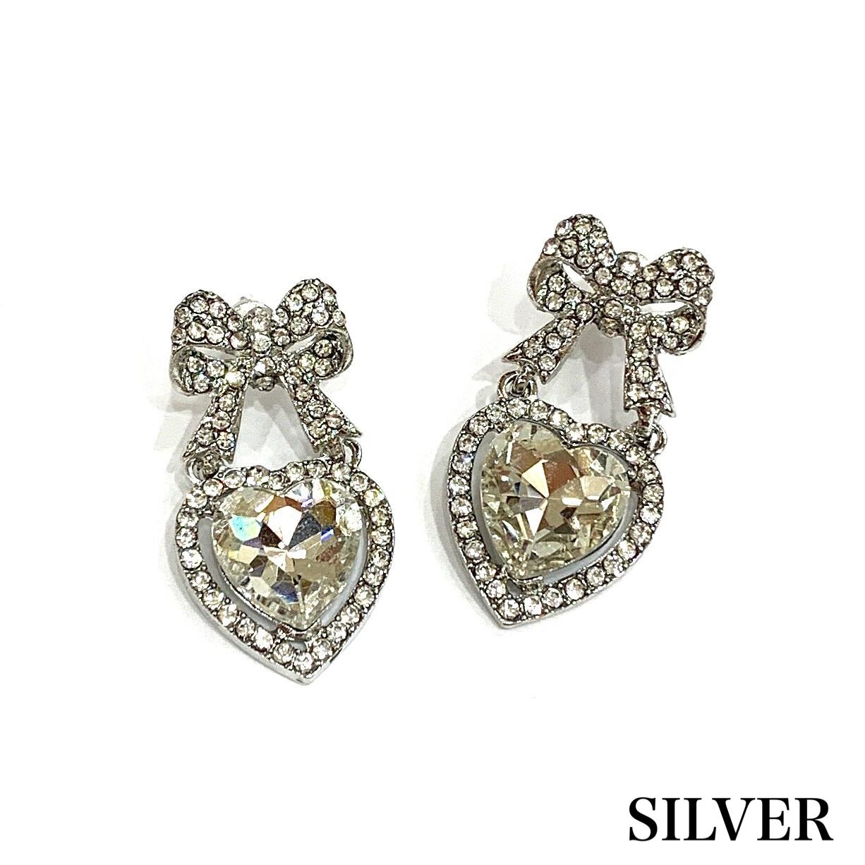 リボンハートビジューピアス
