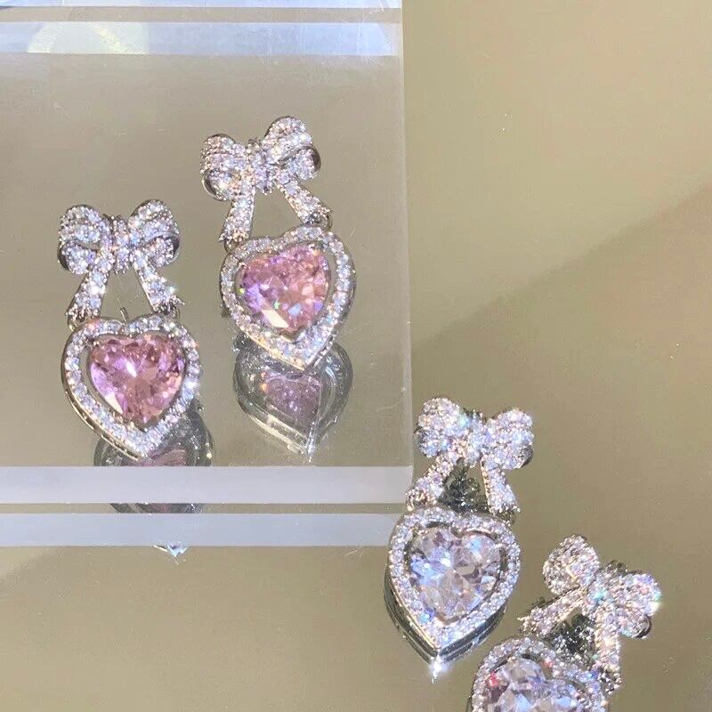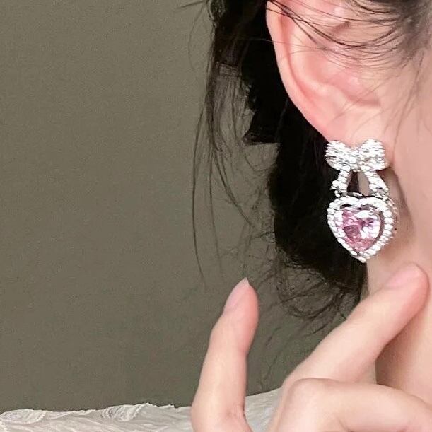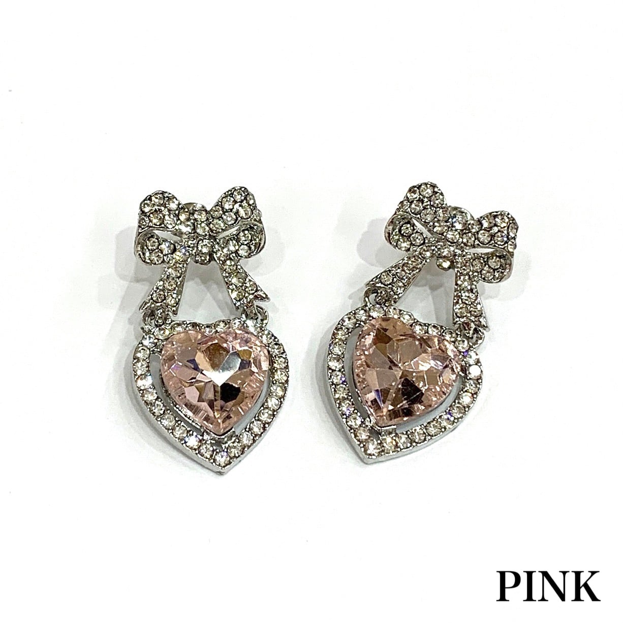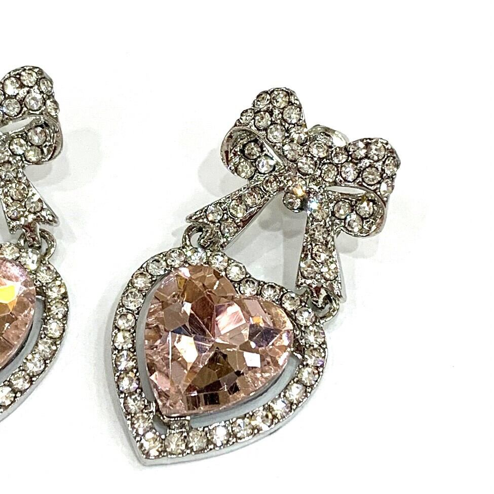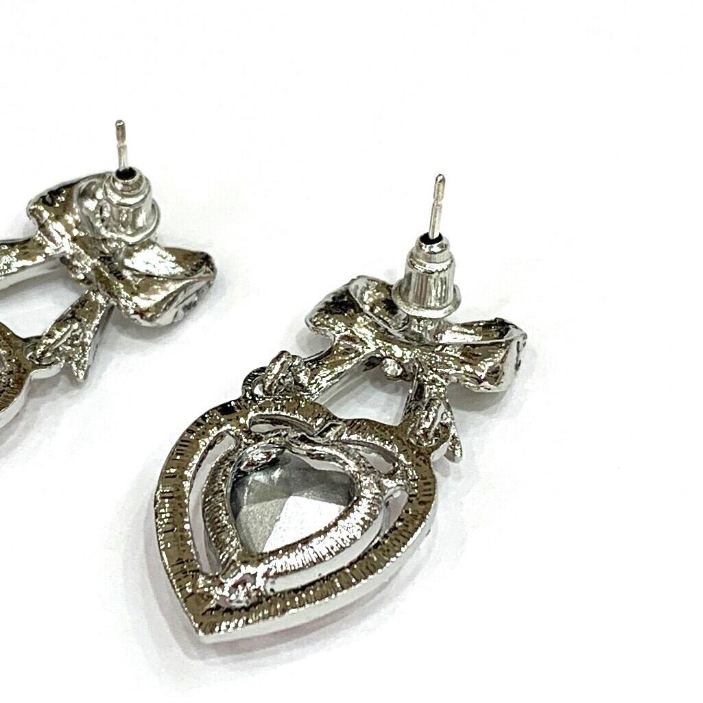 リボンハートビジューピアス
